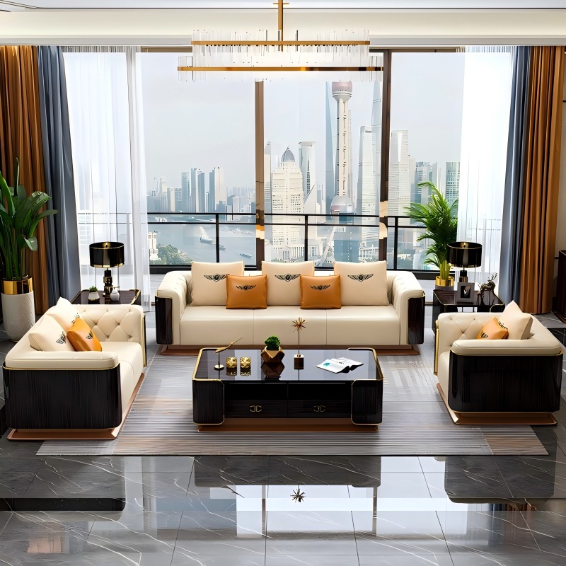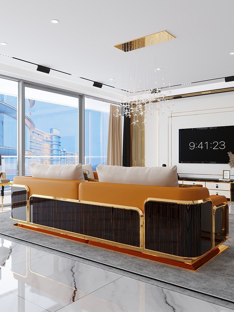 Det modulære gratis kombinationsdesign giver dig mulighed for frit at kombinere hoved Sofa + Chaise Longue + enkelt sæde for at imødekomme de sociale behov hos 3-8 personer. Det importerede italienske Nappa -læder matches med tynde metalben, der præsenterer en moderne lys luksus æstetik.