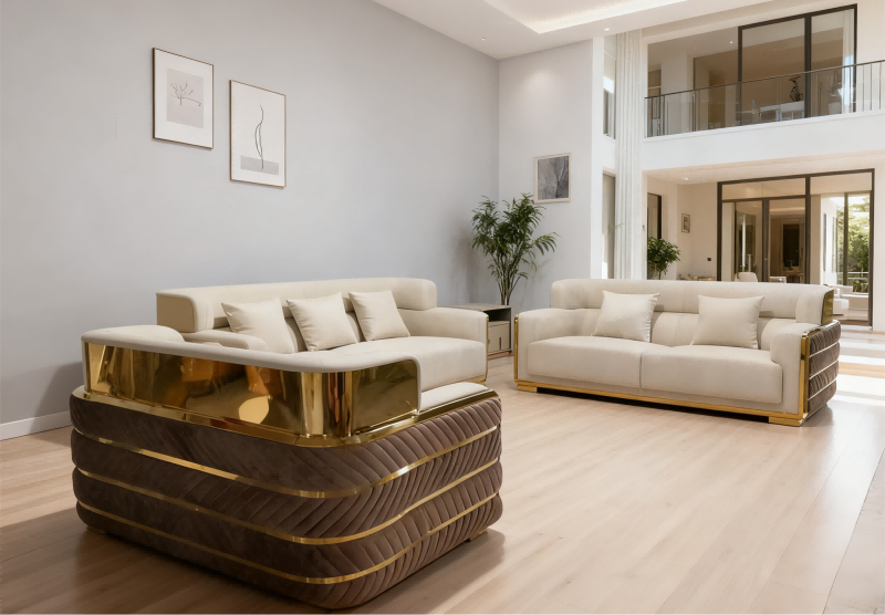 Attraktivt design: Enkle linjer og luksuriøse detaljer som metalben og fløjlspolstring løfter øjeblikkeligt din stues stil.